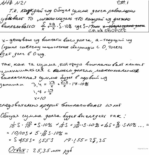 — каждый январь долг возрастает на 10% по сравнению с концом предыдущего года;