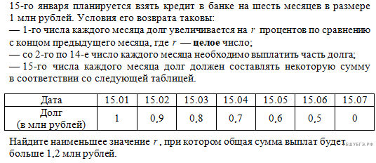 − каждый январь долг увеличивается на r% по сравнению с концом предыдущего года;
