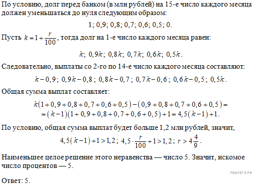 Значит, наибольшая выплата — первая, d = 0,6, то есь всего будет 15 выплат и они составляют арифметическую прогрессию с разностью