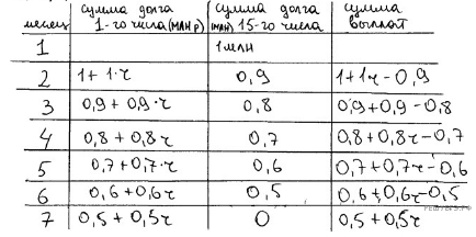 | Долг (в процентах от кредита) | 100% | 90% | 80% | 70% | 60% | 50% | 0% |