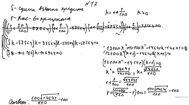 Не снижая общности рассуждений, примем начальную сумму кредита за 100 руб. и будем считать, что выплаты производились