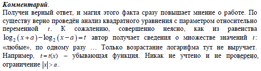 | Получен верный ответ. Решение в целом верное. Обосновано найдены оба промежутка значений параметра из ответа к задаче, при этом возможны неточности с (не)включением концов и(или) вычислительная погрешность | 3 |
