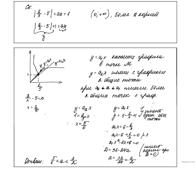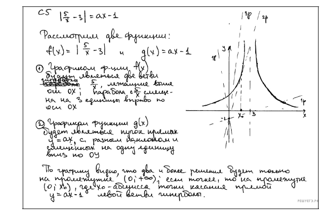 Перепишем неравенство в виде и нарисуем эскизы графиков левой и правой частей неравенства.