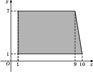 Найдите площадь прямоугольной трапеции, вершины которой имеют координаты (1;1), (10;1), (9;7), (1;7).
