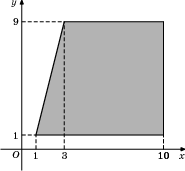 Най­ди­те пло­щадь пря­мо­уголь­ной тра­пе­ции, вер­ши­ны ко­то­рой имеют ко­ор­ди­на­ты (1;1), (10;1), (10;9), (3;9).