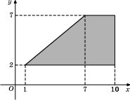 Найдите площадь прямоугольной трапеции, вершины которой имеют координаты (1;2), (10;2), (10;7), (7;7).