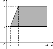 Найдите площадь прямоугольной трапеции, вершины которой имеют координаты (1;4), (10;4), (10;9), (3;9).