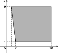 Най­ди­те пло­щадь пря­мо­уголь­ной тра­пе­ции, вер­ши­ны ко­то­рой имеют ко­ор­ди­на­ты (2;1), (10;1), (10;9), (1;9).