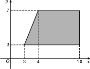 Най­ди­те пло­щадь пря­мо­уголь­ной тра­пе­ции, вер­ши­ны ко­то­рой имеют ко­ор­ди­на­ты (2;2), (10;2), (10;7), (4;7).