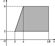 Найдите площадь прямоугольной трапеции, вершины которой имеют координаты (2;2), (10;2), (10;8), (4;8).