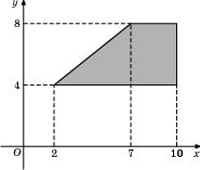 Найдите площадь прямоугольной трапеции, вершины которой имеют координаты (2;4), (10;4), (10;8), (7;8).