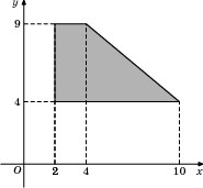 Найдите площадь прямоугольной трапеции, вершины которой имеют координаты (2;4), (10;4), (4;9), (2;9).
