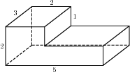Площадь поверхности заданного многогранника равна разности площади поверхности прямоугольного параллелепипеда с ребрами 2, 3, 1 и двух площадей прямоугольников со сторонами 2, 1: