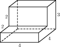 Объем дан­но­го мно­го­гран­ни­ка равен сумме объ­е­мов па­рал­ле­ле­пи­пе­дов с реб­ра­ми 2, 3, 1 и 1, 1, 1: