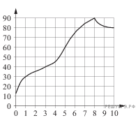 На гра­фи­ке по­ка­зан про­цесс разо­гре­ва дви­га­те­ля лег­ко­во­го ав­то­мо­би­ля. На оси абс­цисс от­кла­ды­ва­ет­ся время в ми­ну­тах, про­шед­шее от за­пус­ка дви­га­те­ля, на оси ор­ди­нат  — тем­пе­ра­ту­ра дви­га­те­ля в гра­ду­сах Цель­сия.