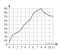 На гра­фи­ке по­ка­зан про­цесс разо­гре­ва дви­га­те­ля лег­ко­во­го ав­то­мо­би­ля. На оси абс­цисс от­кла­ды­ва­ет­ся время в ми­ну­тах, про­шед­шее от за­пус­ка дви­га­те­ля, на оси ор­ди­нат  — тем­пе­ра­ту­ра дви­га­те­ля в гра­ду­сах Цель­сия.