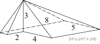Найдите объем пирамиды, изображенной на рисунке. Ее основанием является многоугольник, соседние стороны которого перпендикулярны, а одно из боковых ребер перпендикулярно плоскости основания и равно 8.