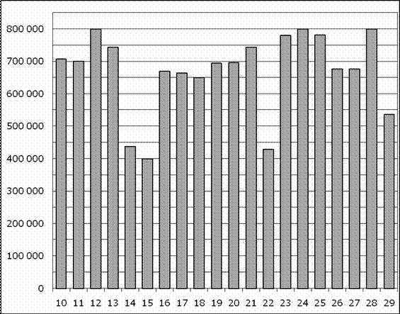 На диаграмме показано количество посетителей сайта РИА Новости во все дни с 10 по 29 ноября 2009 года. По горизонтали указываются дни месяца, по вертикали — количество посетителей сайта за данный день. Определите по диаграмме, какого числа в указанный период количество посетителей сайта РИА Новости впервые приняло наибольшее значение.