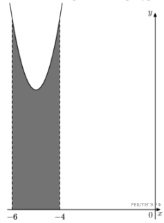 На ри­сун­ке изоб­ражён гра­фик не­ко­то­рой функ­ции  y = f левая круг­лая скоб­ка x пра­вая круг­лая скоб­ка . Функ­ция F левая круг­лая скоб­ка x пра­вая круг­лая скоб­ка =x в кубе плюс 15x в квад­ра­те плюс 80x минус дробь: чис­ли­тель: 1, зна­ме­на­тель: 2 конец дроби   — одна из пер­во­об­раз­ных функ­ции f(x). Най­ди­те пло­щадь за­кра­шен­ной фи­гу­ры.