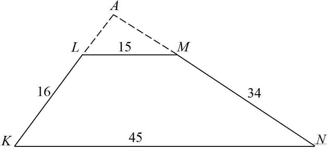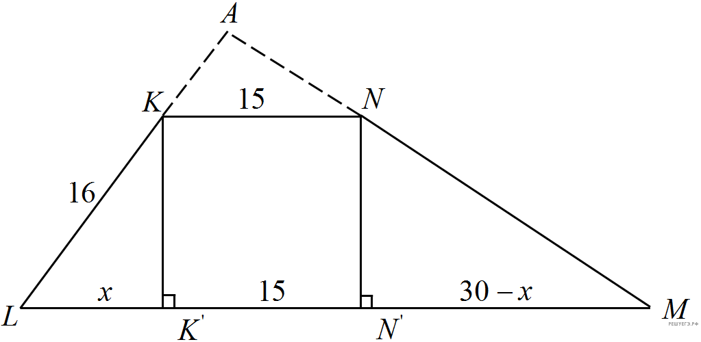 Тогда точки А и L лежат по разные стороны от прямой KN. В этом случае Пусть прямая, проведённая через точку N параллельно KL, пересекает прямую LM в точке С. Тогда треугольник ALM подобен прямоугольному треугольнику NCM с коэффициентом