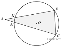Версия для печати и копирования в MS WordЧерез вершины B и C треугольника ABC проходит окружность, пересекающая стороны AB и AC соответственно в точках K и M.