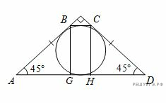 Рассмотрим осевое сечение конуса. В нем получится трапеция ABCD, в которую вписана окружность. Проведем высоты BG и CH из точек B и C. Тогда