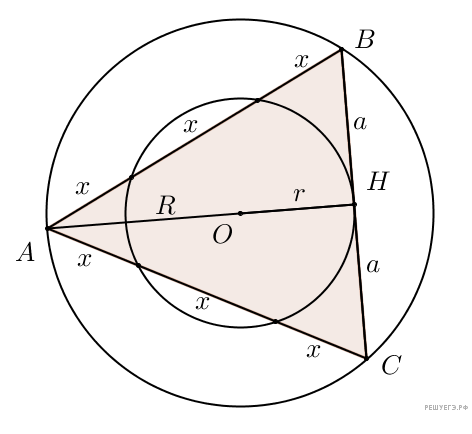Получили, что AB = 3x = AC, то есть треугольник ABC — равнобедренный. Заодно получается, что точки A, O и H лежат на одной прямой.