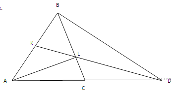 Версия для печати и копирования в MS WordПлощадь треугольника АВС равна 12. На прямой АС взята точка D так, что точка С является серединой отрезка AD. Точка K — середина стороны AB, прямая KD пересекает сторону BC в точке L.