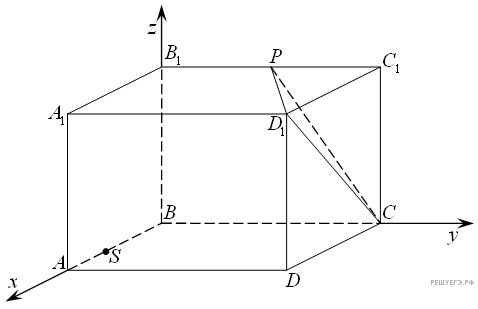 Версия для печати и копирования в MS WordДан куб c ребром, равным 4. Пусть точка S лежит на стороне AB так, что