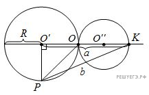 Две окружности касаются в точке O, причем радиус окружности с центром в точке O' больше, чем радиус окружности с центром в точке O''. Прямая O'O'' пересекает меньшую окружность в точке K (K отлично от O). Отрезок O'K = a. Прямая t касается большей окружности в точке P так, что угол O''O'P — прямой. Отрезок PK = b. Найдите площадь треугольника OO'P.