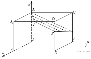 Решим задачу координатно-векторным методом. Введем декартову систему координат с началом в вершине куба. Оси координат направим по прямым, как показано на рисунке.