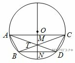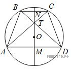 в точке N. Обозначим также центр окружности за O, а точку пересечения диагоналей за T. Имеем тогда