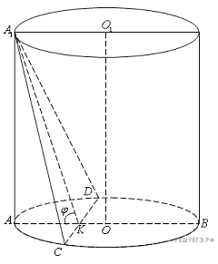 Пусть O — центра основания цилиндра, K — точка пересечения хорды CD и диаметра Тогда