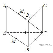 Версия для печати и копирования в MS WordВ основании прямой призмы ABCA1B1C1 лежит равнобедренный треугольник ABC с основанием AB = 10. Найдите расстояние между прямой CC1 и прямой, проходящей через точку A и параллельной прямой CM1, где M1 — середина стороны A1B1.