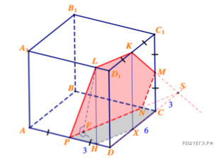 Найдем абсциссу точки S пересечения прямой KM с плоскостью (ABCD) из уравнения плоскости сечения при y = 3, z = 0: