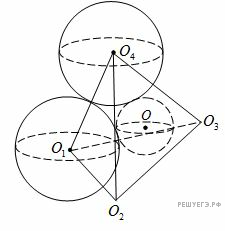 Если сфера ра­ди­у­са r с цен­тром O ка­са­ет­ся дан­ных сфер внеш­ним об­ра­зом, то ана­ло­гич­но на­хо­дим, что