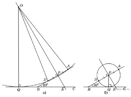 — точку пересечения серединного перпендикуляра с прямой BC (см. рис. а). Из условия касания окружности и прямой BC следует, что отрезки