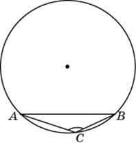 В треугольнике AOB имеем AO = OB = 1, тогда по теореме обратной теореме Пифагора, угол AOB = 90°. Следовательно, ∠ ACB = 180° − 45° = 135°.