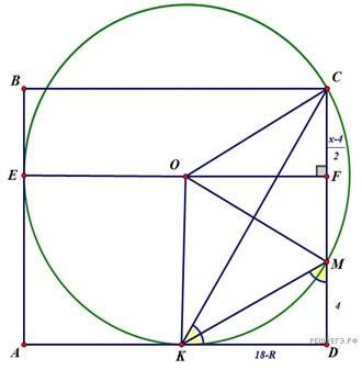 Так как KD = 18 − R, то в соответствии с равенствами (*) и (**) будем иметь: