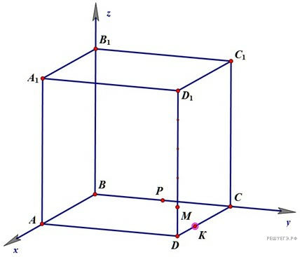 Воспользуемся координатным методом исследования. Поместим заданный куб в декартову систему координат, как показано на рисунке. В таком случае имеем точки: A1(12; 0; 12), K(8; 12; 0), P(0; 6; 0).