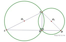 Версия для печати и копирования в MS WordДве окружности пересекаются в точках А и В. Через точку А проведены диаметры АС и АD этих окружностей.