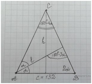 б) Пусть угол при основании треугольника высота, проведенная к основанию, h тогда: в