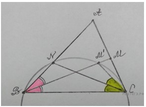 Доказательство. Пусть ABC — треугольник, в котором Пусть отрезки BM и CNделят пополам углы В и С соответственно. Наша задача — доказать, что BM > CN.