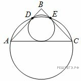 Версия для печати и копирования в MS WordОкружность касается сторон AB и BC треугольника ABC соответственно в точках D и E, точки A, D, E, C лежат на одной окружности.