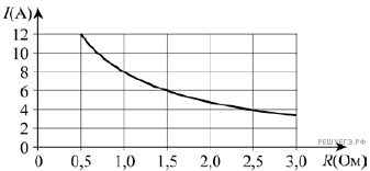 Мощность отопителя в автомобиле регулируется дополнительным сопротивлением, которое можно менять, поворачивая рукоятку в салоне машины. При этом меняется сила тока в электрической цепи электродвигателя — чем меньше сопротивление, тем больше сила тока и тем быстрее вращается мотор отопителя. На рисунке показана зависимость силы тока от величины сопротивления. На оси абсцисс откладывается сопротивление (в омах), на оси ординат — сила тока в амперах. На сколько ампер уменьшится сила тока, если увеличить сопротивление с 1 Ом до 1,5 Ом?
