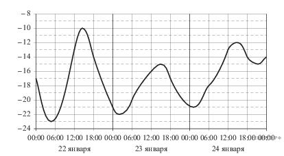 На рисунке показано изменение температуры воздуха на протяжении трех суток. По горизонтали указывается дата и время суток, по вертикали — значение температуры в градусах Цельсия. Определите по рисунку разность между наибольшей и наименьшей температурами воздуха 24 января. Ответ дайте в градусах Цельсия.