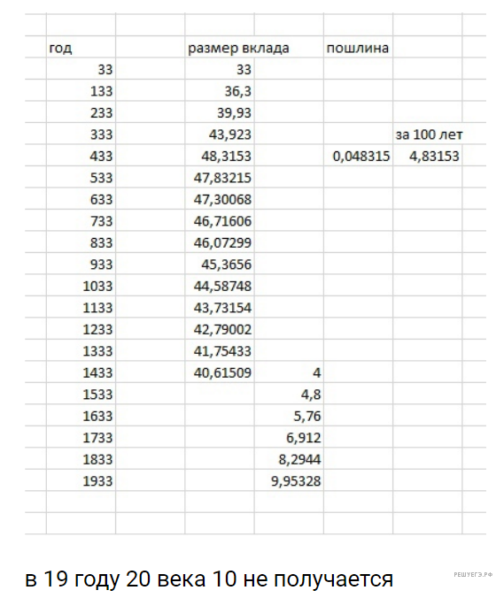 Когда что начисляется? По каким правилам? Следует ли считать, что в период действия пошлины проценты начисляются на остаток вклада на момент начисления процентов? А что при закрытии вклада можно снять только целое число золотых, то получается 10»? В этих предположениях не сходится.
