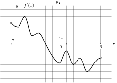 На рисунке изображен график производной функции f(x), определенной на интервале (−8; 4). В какой точке отрезка [−7; −3] f(x) принимает наименьшее значение?