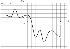 На рисунке изображен график производной функции f(x), определенной на интервале (−8; 4). В какой точке отрезка [−7; −3] f(x) принимает наименьшее значение?