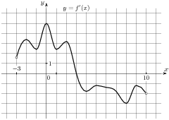 На ри­сун­ке изоб­ра­жен гра­фик про­из­вод­ной функ­ции f левая круг­лая скоб­ка x пра­вая круг­лая скоб­ка ,